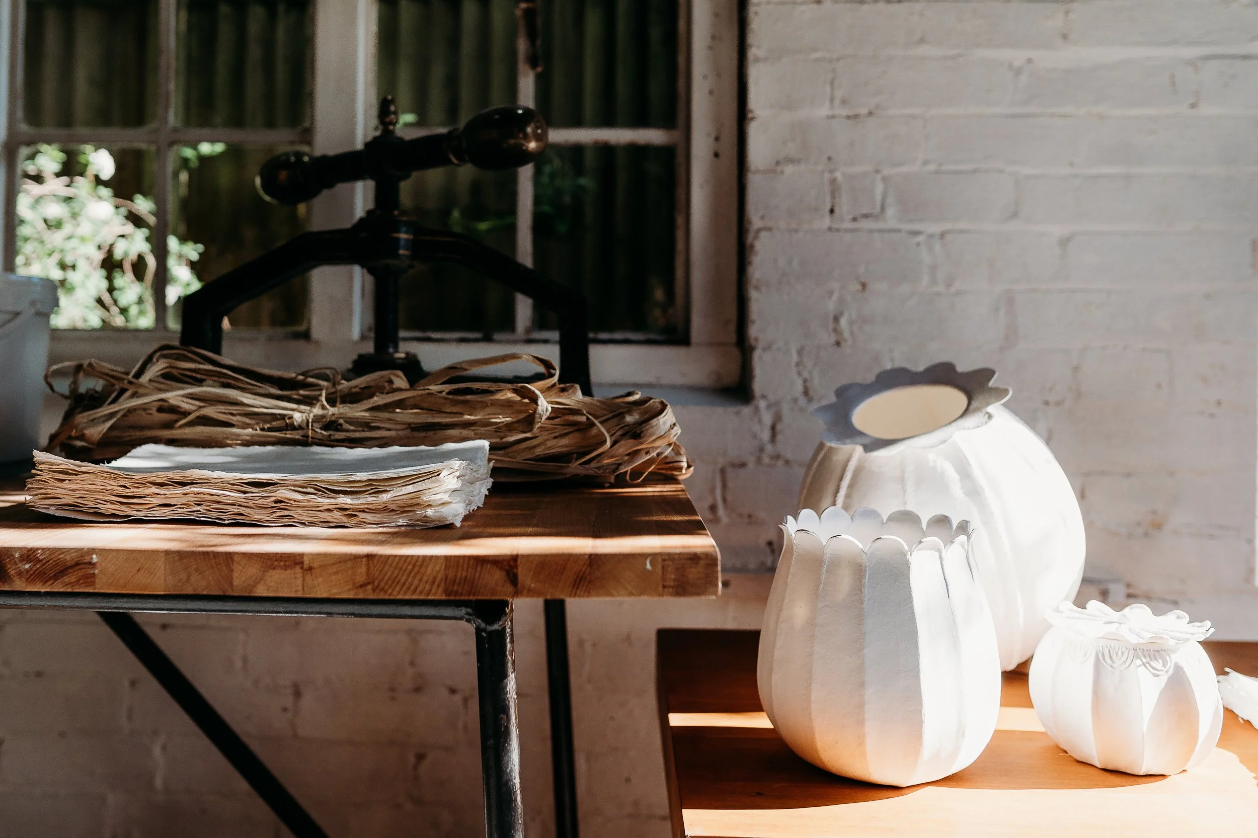 The fibres I use are derived from linen, cotton, banana leaf and mulberry shoots. Flax (linen) and kozo (mulberry shoots) offer fantastic strength through the length of their fibres and abaca (banana leaf) is much loved for its softness and creamy colour.